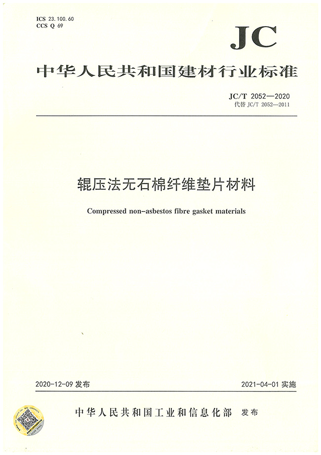 我司參與起草JC/T2052《輥壓法無石棉纖維墊片材料》標準 上海索拓密封材料有限公司(以下簡稱“我司”)參與起草了JC/T 2052-2020《輥壓法無石棉纖維墊片材料》標準 是JC/T 2052-2020《輥壓法無石棉纖維墊片材料》標準的第三起草單位。 上一個 返回列表 下一個