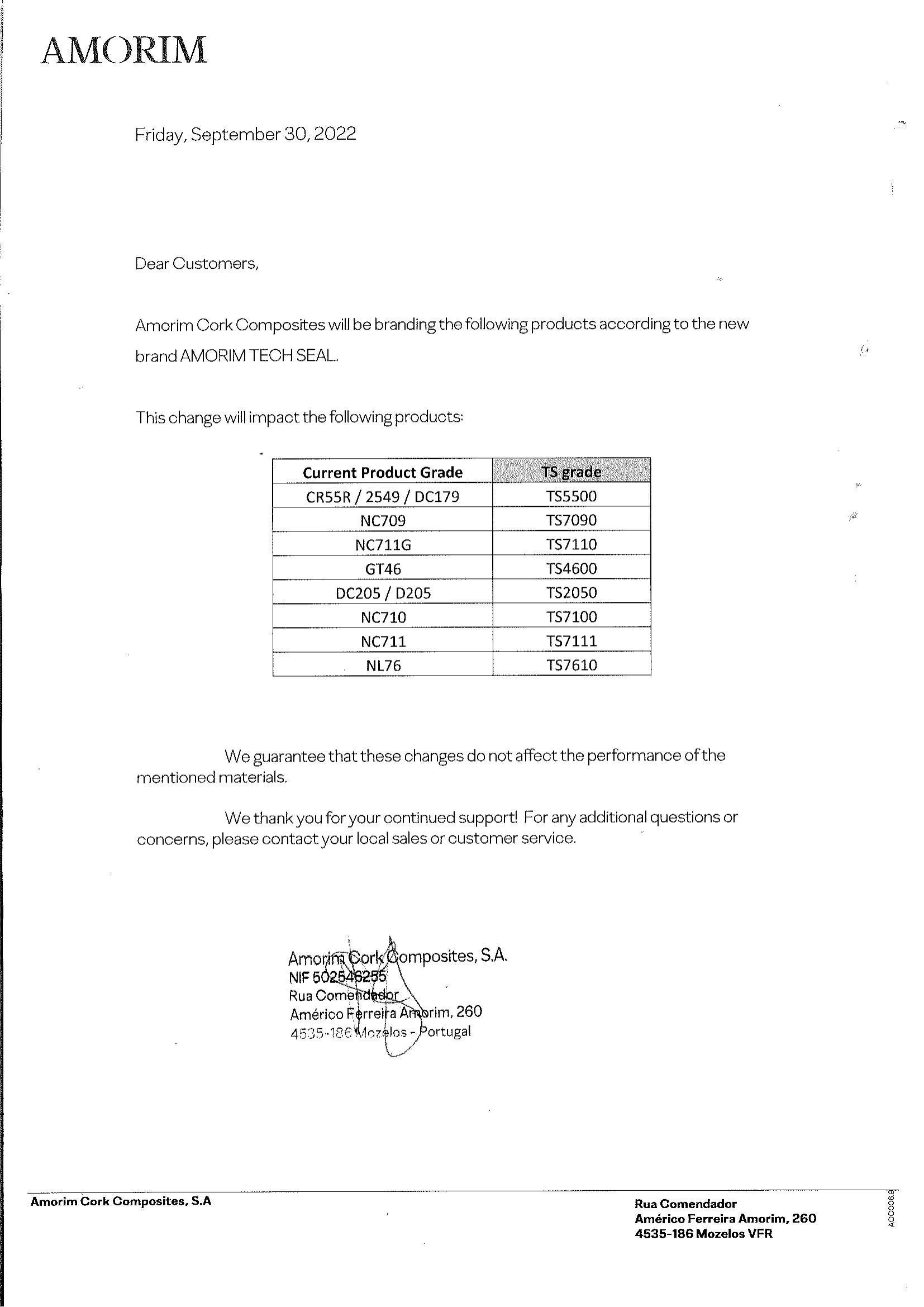 AMORIM ACC部分產品名稱更新